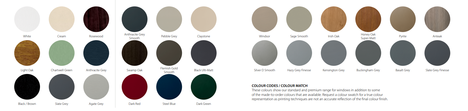 Whether you're looking for a modern Grey or a classic wood-grain our window systems come in a variety of colours.